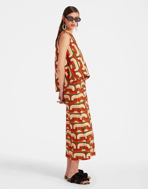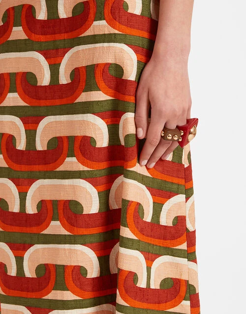 Long and lovely, this super skirt has a mid-rise waist, falling slim on the hips into an A-line shape that swings above the ankle. Fabulous in our latest print, it arrives for the summer season crafted from Italian shot cotton which has a nubby linen feel perfect for city sauntering or vineyard hopping. Also great: pockets. Fabulously versatile from the office to weddings, vacations and beyond, tuck in your fave silk shirt and call it an outfit.