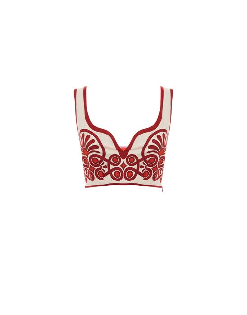 Baia Crop Top Medallion Placée Cream In Flat Cotton Stretch