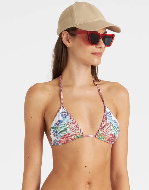 You know the drill, ladies. It’s the classic, adjustable cut you know and love — but a bit better. Our version is made of super high-quality Italian Lycra so you’ll still be loving it five summers from now and arrives in this stunning hand-placed Grenadilla print strewn with fruits and florals to really bring the sunshine. Match it with the Bikini Bottoms for your molto elegante poolside entrance.