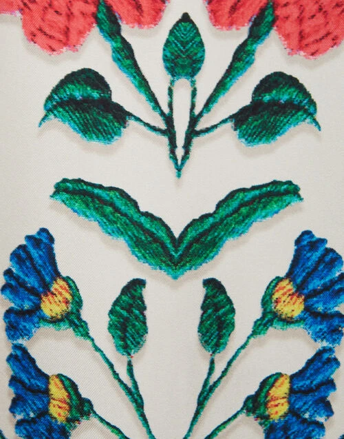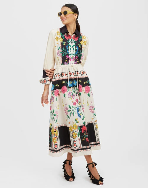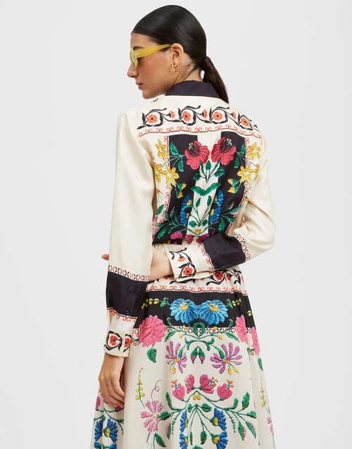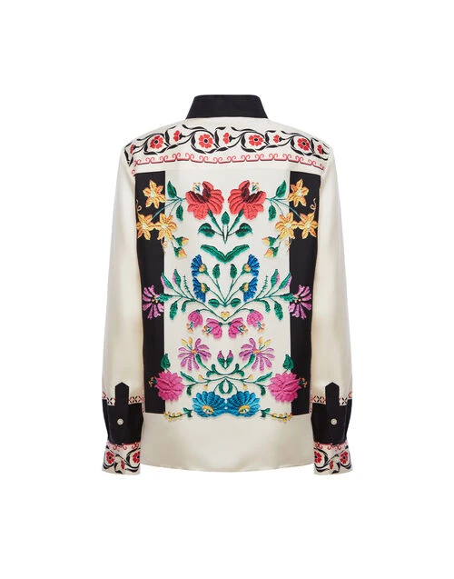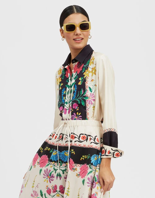 This classic, straight-cut button down silk shirt is timeless and goes with virtually anything in your wardrobe. The fit is straight and feminine with slightly gathered sleeves that hit at the wrist, which brings tons of easy elegance for work, weekends, and just about everywhere else. Featuring blooming florals, this bellissima Plaza print is ripe for spring and is placed by hand for a luxury finish.
