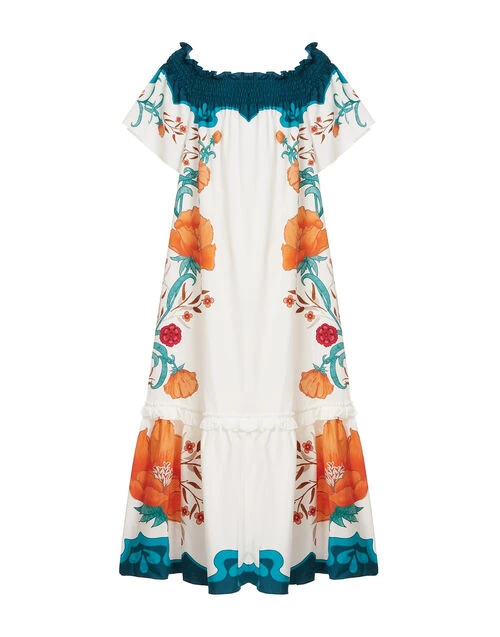 Named after an ancient Tuscan village, the Capalbio Dress is destined for hot Mediterranean days and sultry summer nights. The delight is in its versatility: with an elasticated smock neckline and voluminous bell sleeves, you can wear it on or off your shoulders depending on your vibe (or sun tan). Never too heavy in our fresh cotton poplin, this swish-tastic silhouette has an extra ruffle tier that pumps up the volume while you twirl under the stars.