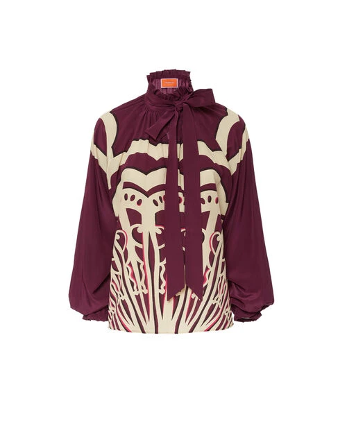 Cerere Blouse Fans Placée Purple In Crepe De Chine