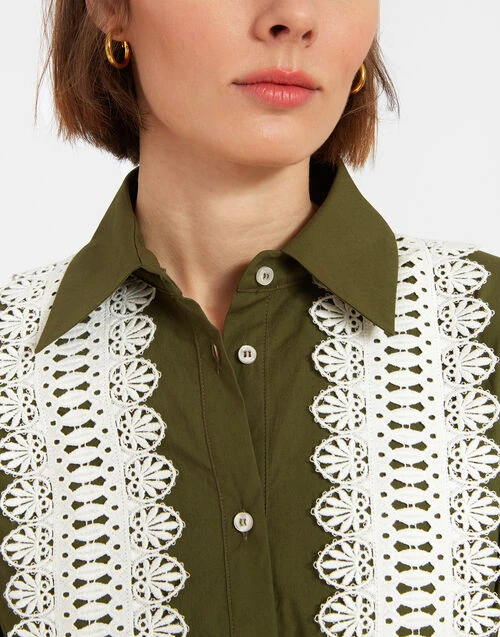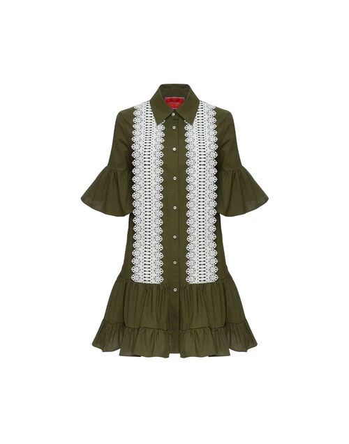 Choux Dress Solid Camouflage In Crisp Poplin With Lacey Ribbons