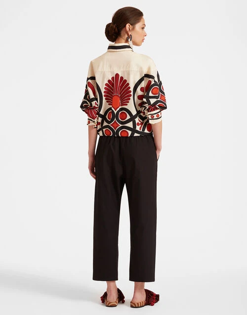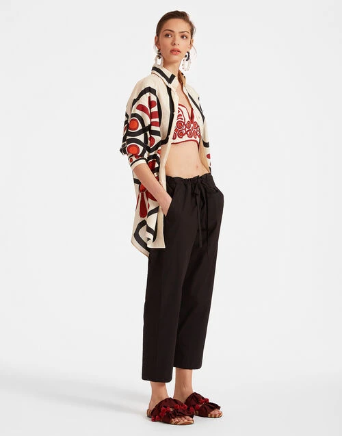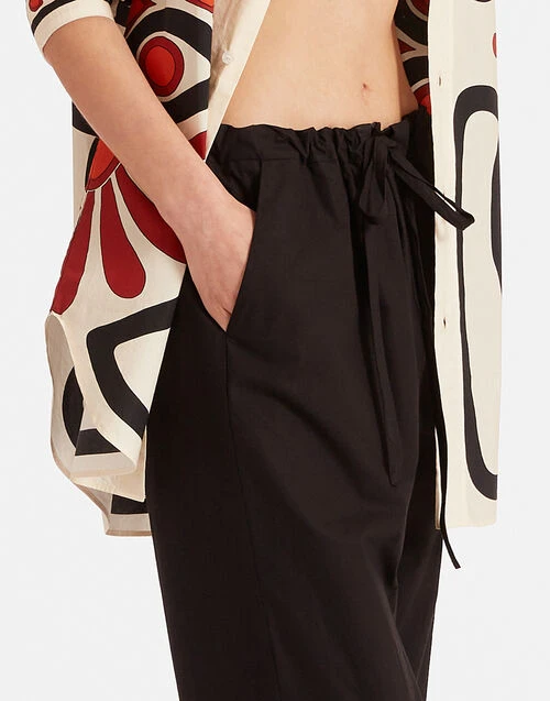 Day-to-night dressing just got supremely easier thanks to these silk twill pants with a drawstring waist. Black is chic no matter the season, particularly in our Como-crafted crisp poplin in this barrel-shape design that crops above the ankle. Adjustable so you can wear them high or let them loose after an extra long lunch a la Italiana, wear them to your meditation class, cocktail party, sofa, beach and beyond.