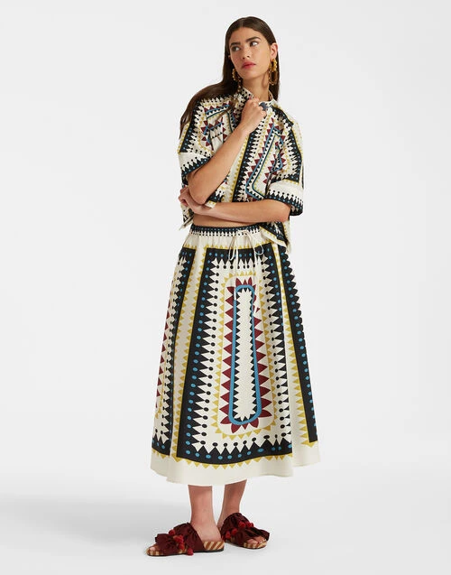 Boho, but better: exude a chic Ibiza vibe in our Drawstring Skirt, which arrives for far-flung getaways in this grogeous light cotton poplin. Designed with a drawstring waist (no vacation deserves a tight waistband), this beauty hits at the ankle on more petite women and mid-calf on longer legs with a zig-zag hemline to really bring the free spirit vibe home. Dress it up with our La Scala Top, dress it down with our Poet Skirt and definitely finish with some oversized sunglasses.