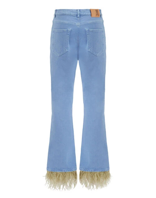 Fancy Crop Jeans (With Feathers) Light Blue In Denim