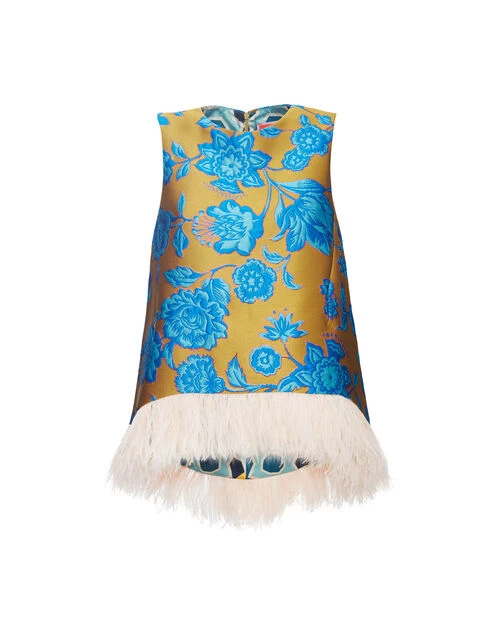 La Scala Top Hottie Turquoise In Jacquard With Feathers