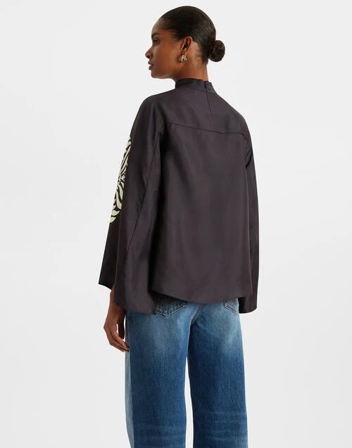 Make An Exit Top Mix Tiles Placée Black In Silk Twill