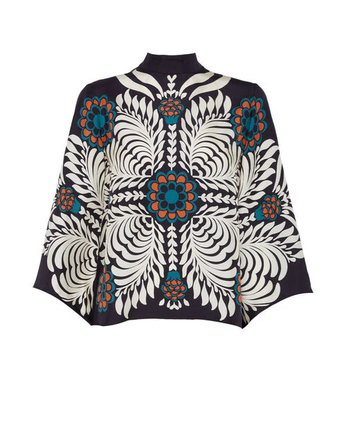 If a top could be a tease, this one would be it. Deceptively demure in the front with a high neck and easy A-line shape through the body, it’s the back of this beauty that truly wows, with a cape-like high-low back that floats as you turn. Crafted in this elegant hand-placed print, our silk twill iteration has date night drama written all over it. Throw it under a gilet or our Folk Jacket for bohemian flare, or with our Milano Skirt for a super chic silhouette.
