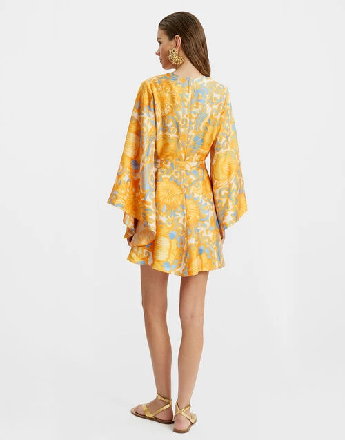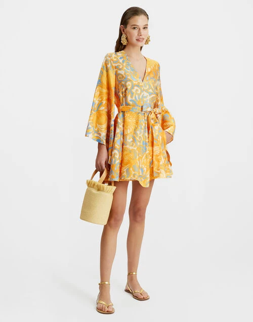 We love our best-selling Magnifico SO much, we made a mini version! Same delicious deep V. Same dramatic, flowing bell sleeves. Same 100% Italian silky twill. New, sexy, thigh-skimming hem. Just as gorgeous on our leggy LDJ ladies as our petite principessas, the Mini Magnifico comes with a removable sash that can be worn as a belt and, as always, perfectly concealed pockets. An elegant evening number that can be worn cinched, free-flowing, backwards, forwards…basically she’s the ultimate summer workhorse, with a little extra wonder thrown in.