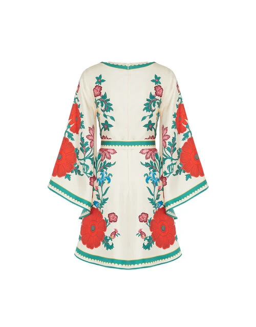 We love our best-selling Magnifico SO much, we made a mini version! Same delicious deep V. Same dramatic, flowing bell sleeves. Same 100% Italian silky twill. New, sexy, thigh-skimming hem. Just as gorgeous on our leggy LDJ ladies as our petite principessas, the Mini Magnifico comes with a removable sash that can be worn as a belt and, as always, perfectly concealed pockets. An elegant evening number that can be worn cinched, free-flowing, backwards, forwards…basically she’s the ultimate summer workhorse, with a little extra wonder thrown in.