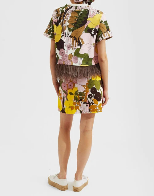 Mini Skirt Big Flower Rose In Heavy Cotton Stretch
