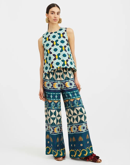 We cannot take credit for inventing the Palazzo Pant silhouette, but we will take credit for making them cool again. These trousers sit on the waist and fall flared, with a wide, breezy fit through the legs – like a skirt, but with the comfort of pants. Let our tiled Casareale print evoke Portofino summers – wear them over the matching Sexy swimsuit for your morning ocean plunge.
