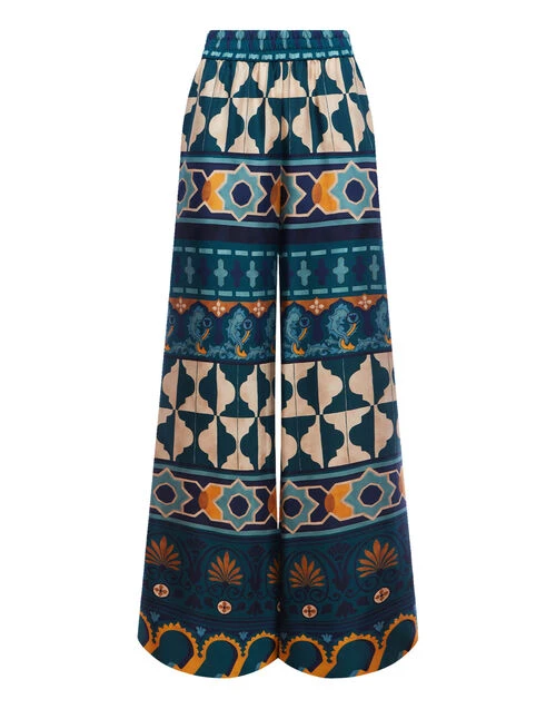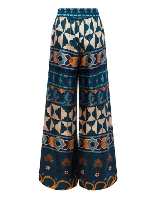 Palazzo Pants Casareale Placèe Emerald In Silk Twill