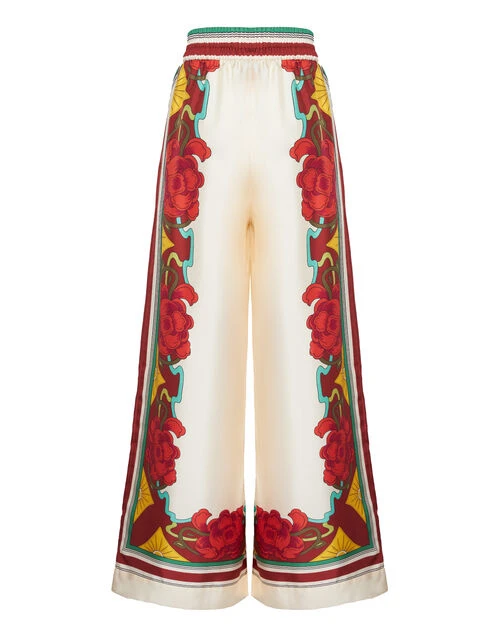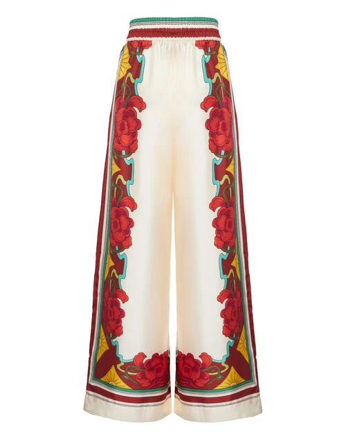 Palazzo Pants Taormina Placée Ivory In Twill Silk
