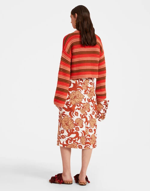 Not your usual librarian’s pencil skirt, our Pencil Skirt is destined to become one of your most loved wardrobe pieces in this gorgeous embroidered cotton with a hint of stretch. With a light flare for easy strolling, it sits low on your hips, and hems about the calf (hot tip: style your knee-high boots underneath). Great for work with a crisp white shirt or razz up for special occasions with the matching Aria top. That’s what we call va va voom versatility.