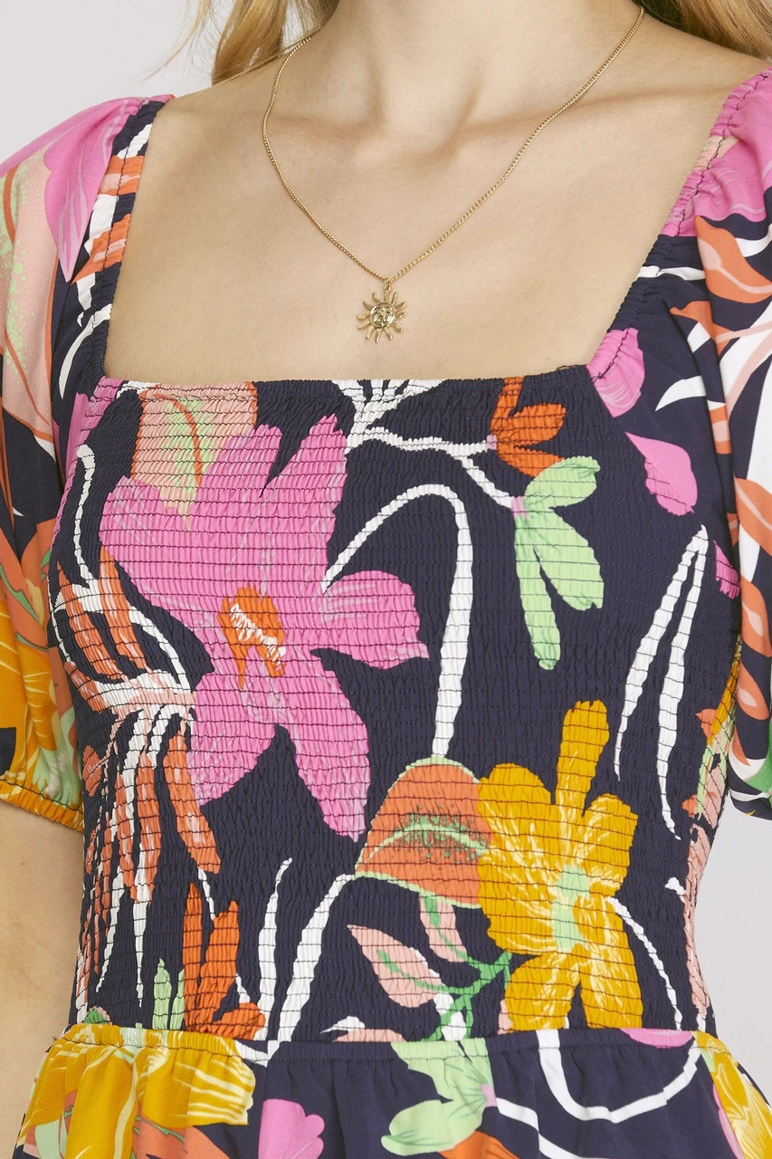 She + Sky Printed Smocked Romper