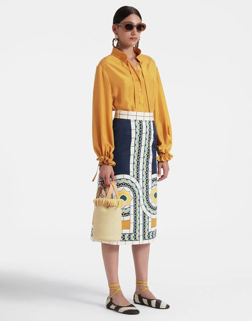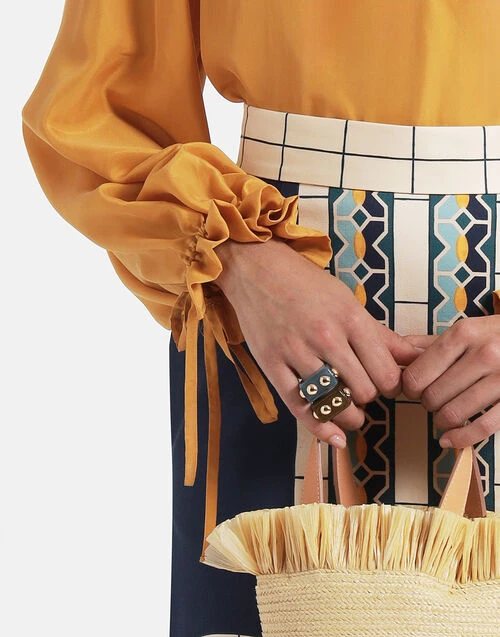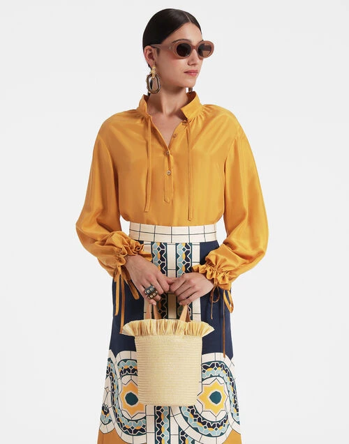 You asked for it, now a shirt version of our iconic Long & Sassy dress is here. With pleating at the back, a ruche-tastic neckline and cuffs secured with little ties, it’s got all the laid-back romanticism you know and love. What’s more, the roomy fit is a suits-all situation. In this ebullient yellow Italian silk, it elevates denim, breaks up print and is a total fail-safe for the office or sleek evening events. A new wardrobe cornerstone, but make it sassy.