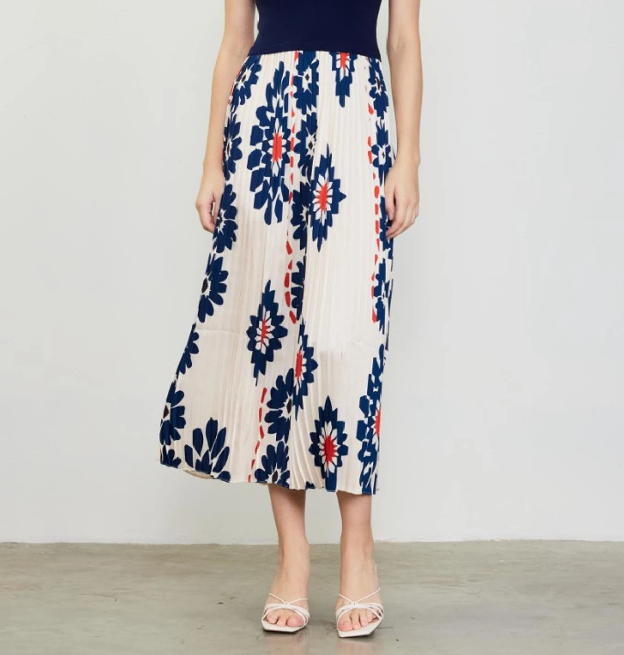 - Printed pleated midi dress